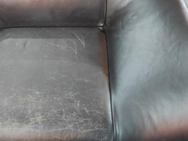Toute la sellerie a été nettoyée, dégraissée. Les plus grosses crevasses dans le cuir ont été comblées avec le cuir liquide de la même teinte. Les déchirures ont d'abord été collées et renforcées avec de la feutrine spécifique avant d'être comblées avec le cuir liquide.